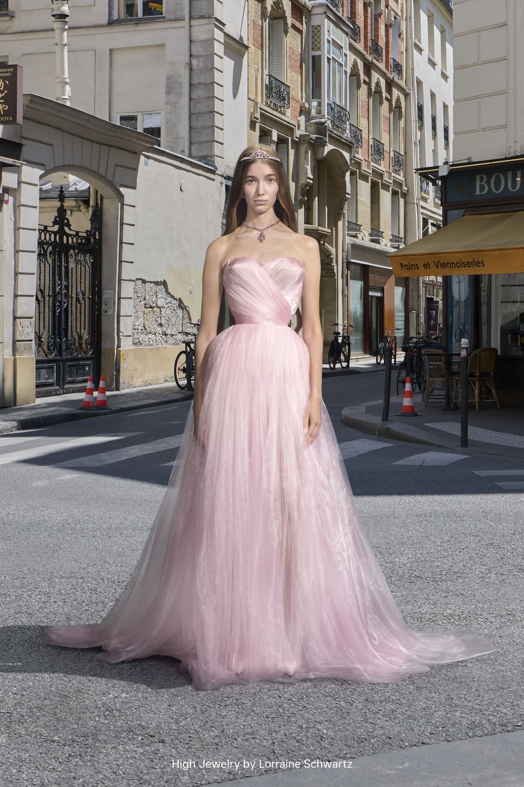 好莱坞的黄金时代是我永恒的灵感之源,也引导我对旧时好莱坞的魅力深度研习。黑色亮片“Diva”礼服的灵感源自Marilyn Monroe,粉色“Debutante”公主连衣裙则以全世界最为轻盈的科技欧根纱制成。垂褶连衣裙采用单缝剪裁。